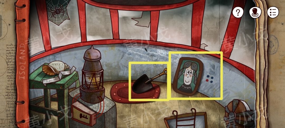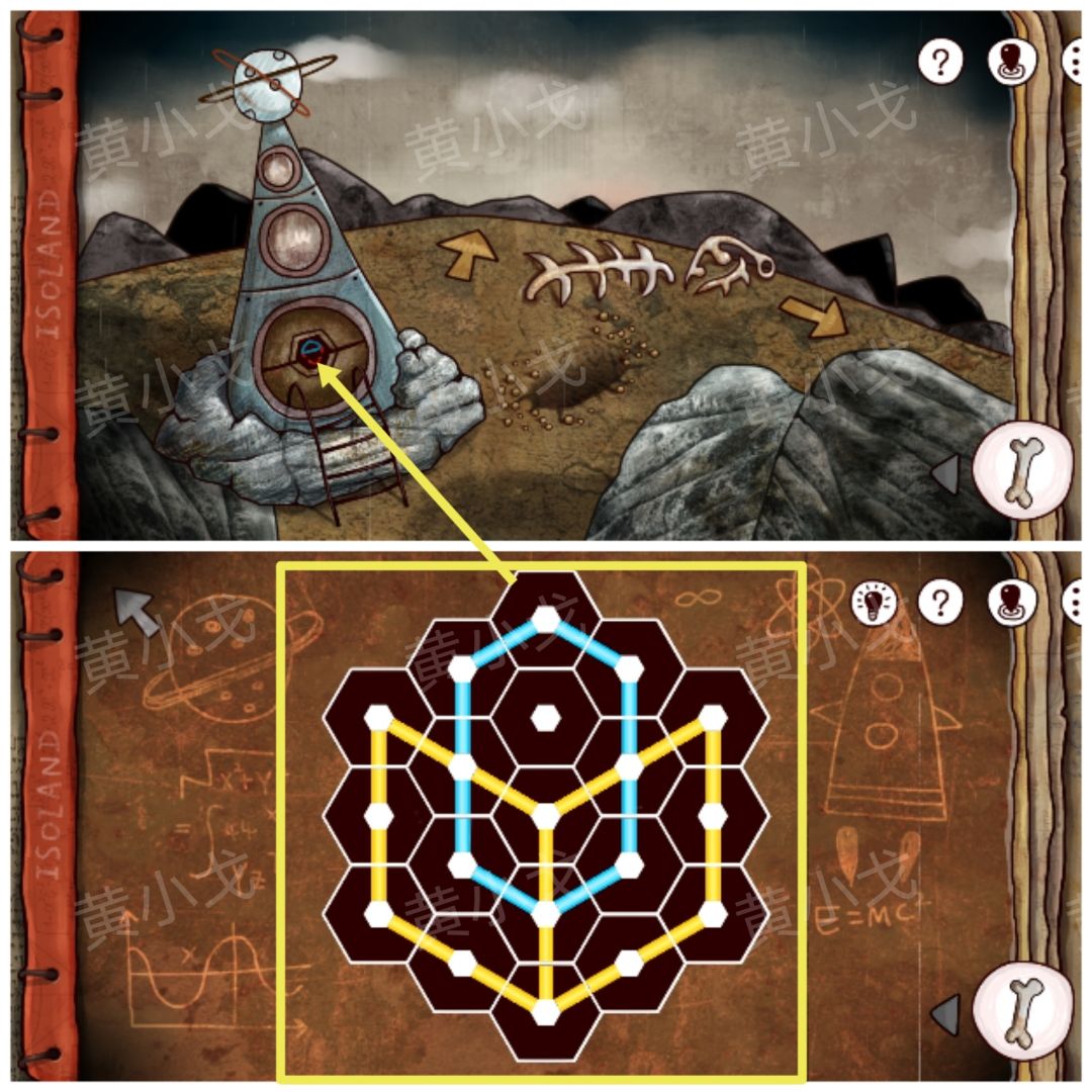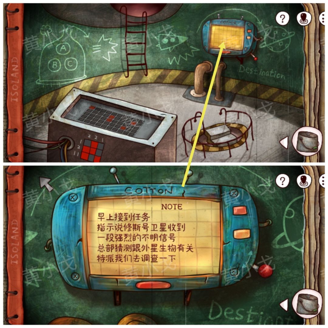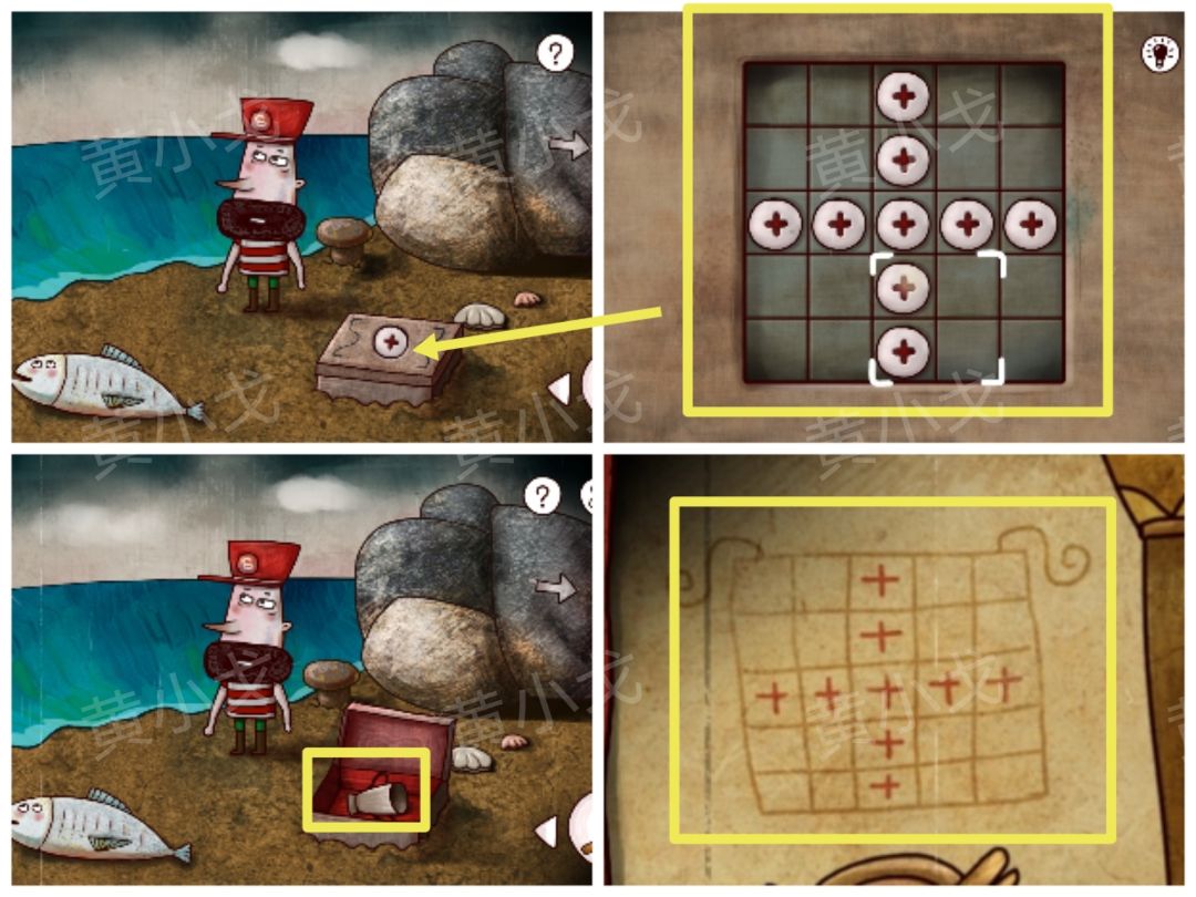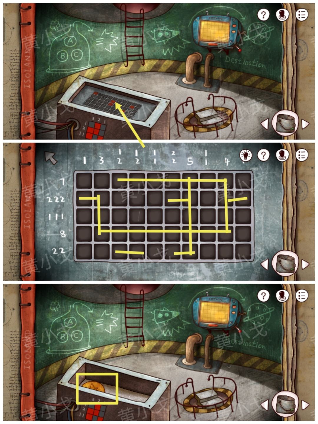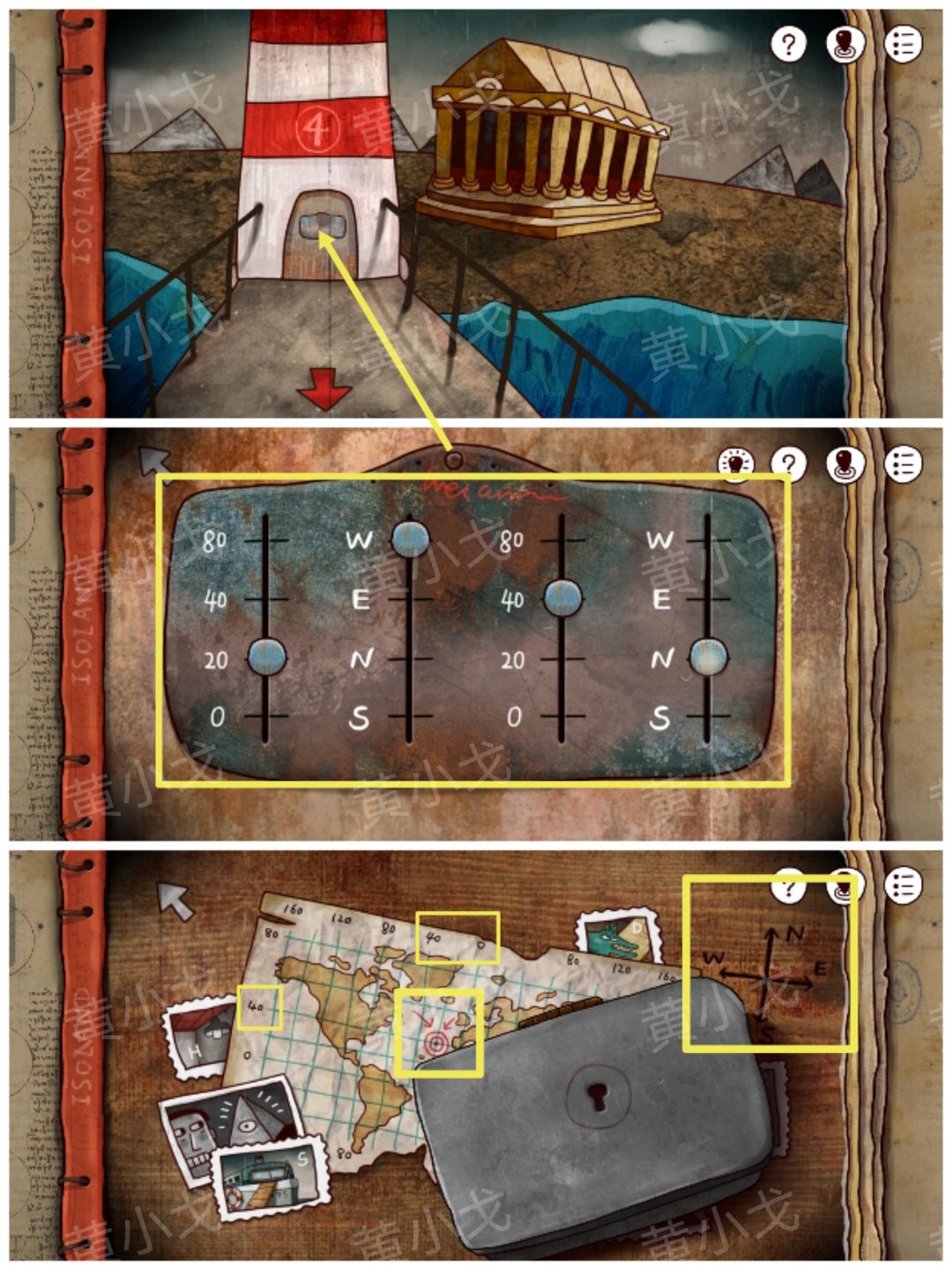 2.点击灯塔门上的密码锁,根据小船地图上红点的坐标,调整密码锁,打开门