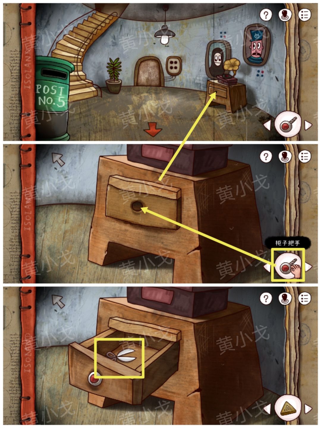 6.点击柜子,装上【柜子把手】;打开柜子,获得【一把剪刀】