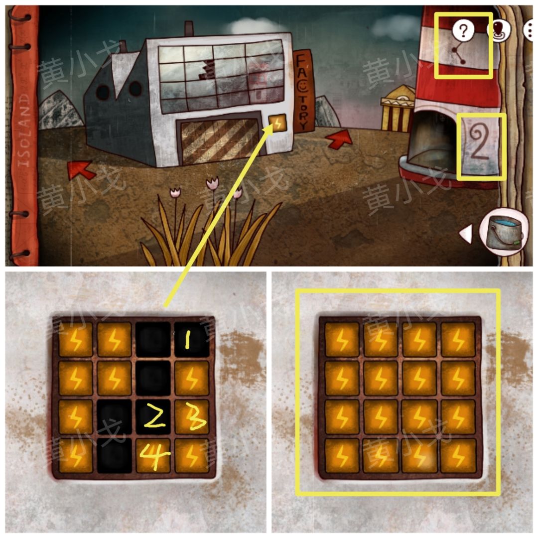 16.点击工厂门上的密码锁,完成翻牌子小游戏,打开门