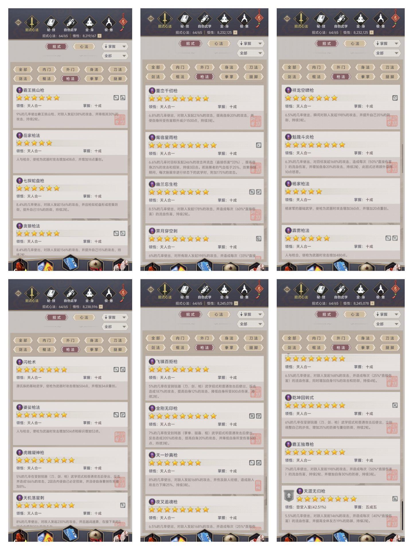 觜枪,金刚,重峦,霁月,斗炎,幽兰,霸王挑山,七探,祥龙,虎魄,天机,飞拒,天一,夜叉,乾坤,霸王独尊,无归,蛟龙