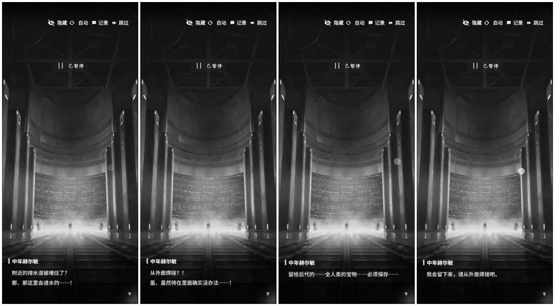 但是这个地堡也岌岌可危了,为了保护这些人类文明的遗产,赫尔敏选择了留下,让妮姬们从外部焊死了地堡的门,他也就一直在里面孤独地活着,直到今天被主角们打开地堡发现。