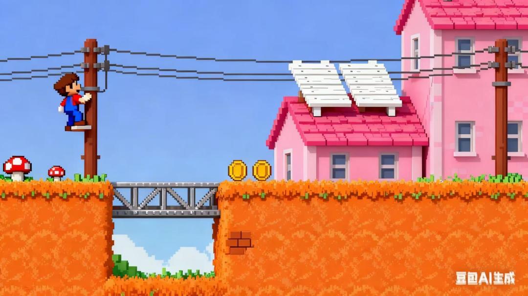 画面有点偏卡通和像素,感觉这样的效果比较梦幻和舒服,画面1和2都是横板视角,画面3是俯视视角,天空和云朵的效果也很符合我们对游戏画面的要求,第一个关卡是在一个小镇上,有着草地、街道、房子、桥、电灯等元素,可以攀爬电灯(电线杆),可以爬上屋顶,也可以通过木板和跳跃来到对面
