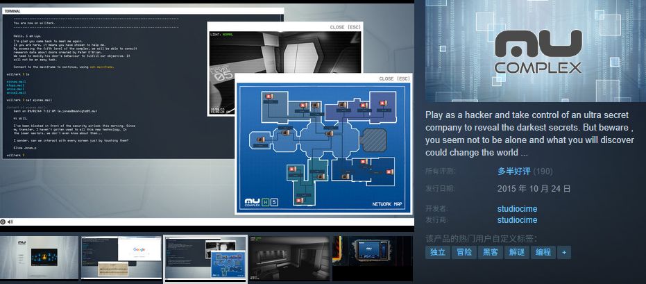 这个创意的核心是让玩家通过控制台输入命令,解决游戏中的“BUG”。一开始的想法是通过让玩家通过输入命令来修复各种系统错误,甚至是黑客入侵 Taptap 的系统,修改游戏主题为「这不是Bug」等,充满了 meta 和幽默感。idea来源是很多年前玩过的一款黑客游戏Mu Complex,但很快我意识到,这个玩法实现起来有些复杂,和bug的关系不是那么大。所以,我暂时放弃了这个方向。