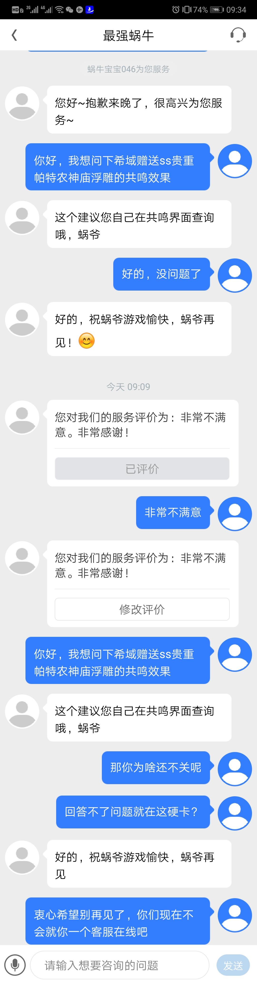 问个游戏内的问题,客服回复就让自己去查,这也就算了,最尼玛离谱的是,换了一个客服问,人家回复说这贵重共鸣效果未实装,这让咋查?