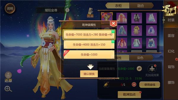 融合后的新时装较普通时装可以提供更优质的属性加成,目前最高可提供生命值+7000、攻击力+280和致命值+40的属性加成。一旦拥有了融合时装,蜀友们在穿其他普通时装时也可以选择替换融合时装的属性。所有的属性都是限时属性,属性过期后,蜀友们可以使用金线进行续期以延长属性。