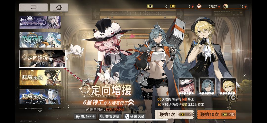 坏消息:歪了,传影这个老牢们角色还能上场吗?我有普攻队,折镜、墨菲、新角色、朝颜,4个都齐了,传影还能塞进去吗?还有刺灰非常尴尬的是3锁,现在这个池子下一个必定不歪,看了说明,是不是这个池子不抽就会清零?抽定向池子好还是抽这个往事专线好?话说4门的刺灰感觉现在上场空间越来越少了,犹豫不决啊