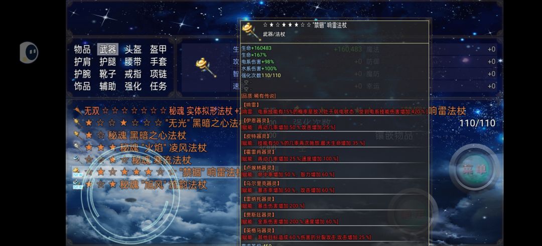 武器这是刷出来星最多的,,好像最高可以到10⭐,无双诅咒秘魂固有词条啥的加上一个武器理论可以有14个词条
