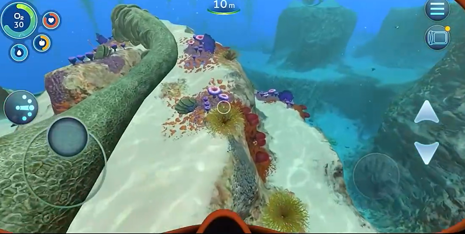 当你第一次潜入浅海,脚蹼划开海水的 “咕嘟” 声便已将现实隔绝。左上角跳动的氧气值是最严苛的倒计时:每下潜 10 米,呼吸就愈发沉重;若沉迷于收集珊瑚礁旁的钛矿石,转瞬便可能在黑暗中迎来窒息的警示。这便是游戏最精妙的生存张力 —— 你必须在 “贪婪” 与 “保命” 间反复权衡:是冒险深入洞穴开采珍贵的锂矿,还是先返回逃生舱储存刚到手的玻璃材料?
