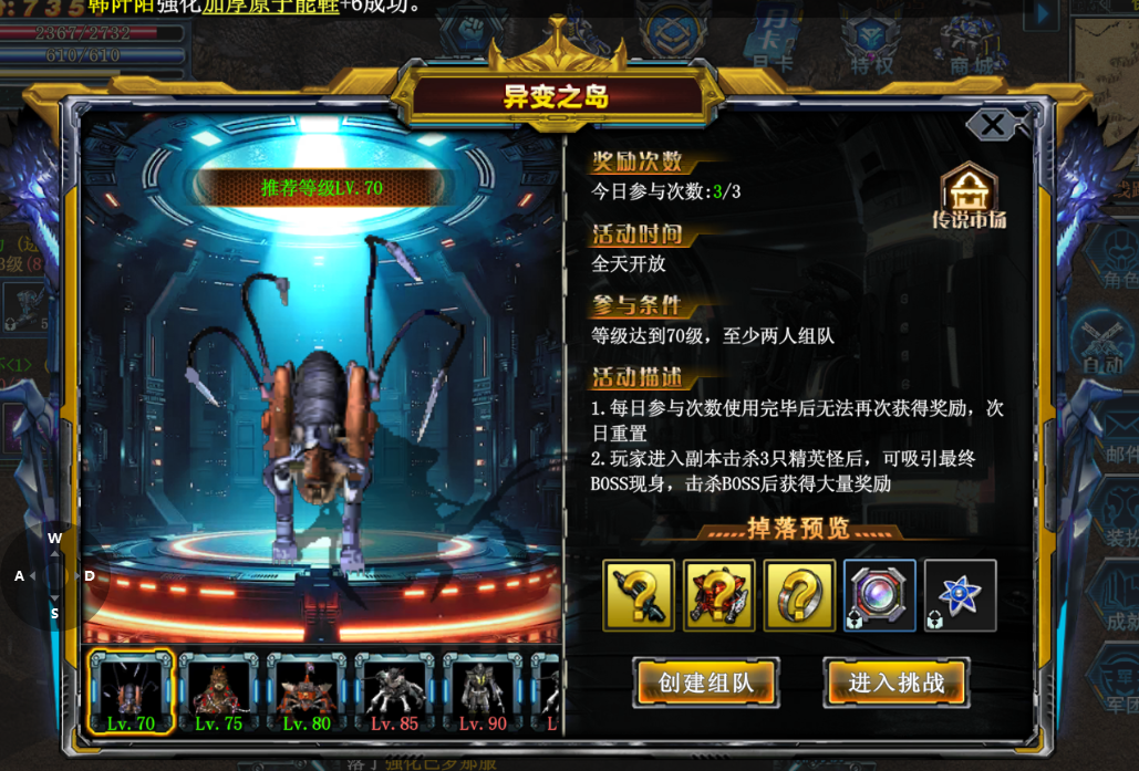 - 异变之岛(新增):70 级 + 2 人组队,击杀 3 精英召 BOSS,每日 3 次奖励,掉落后期养成材料。