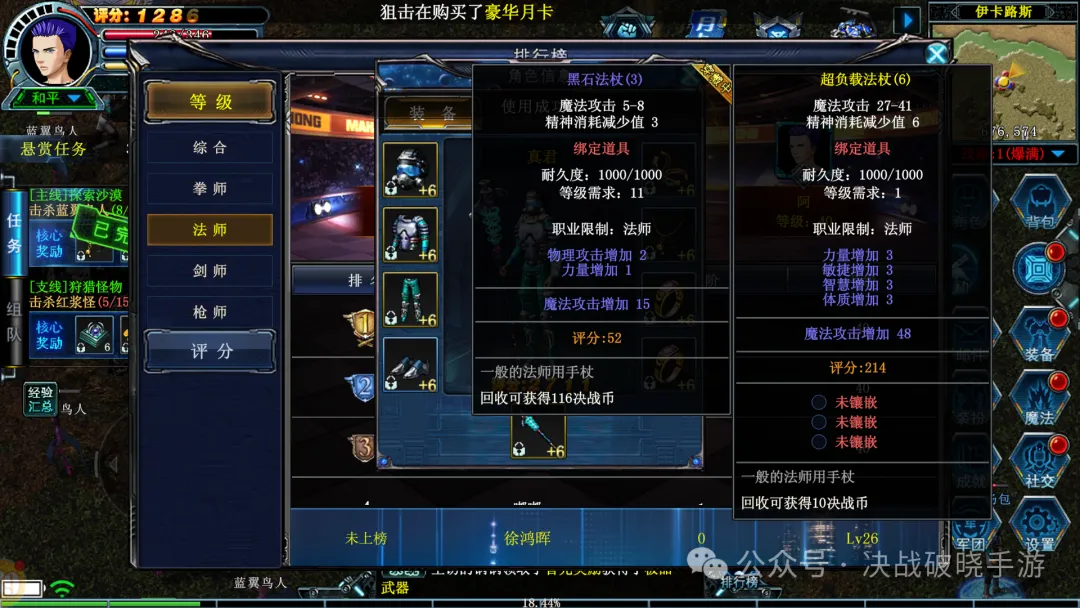 装备养成:品质上,装备分白蓝黄等品阶,金色最佳,蓝色过渡。防具和武器优先选带“智慧”“魔法攻击”“技能等级提升”词条的,有时一件评分略低的蓝装,只要词条好,也能陪你走很久。套装方面,元素套装是魔法师的中后期目标,能显著提升法术攻击与暴击,凑齐五件还能激活元素穿透。别忘了,装备强化前期+6即可,后期再追求高强,避免资源浪费。