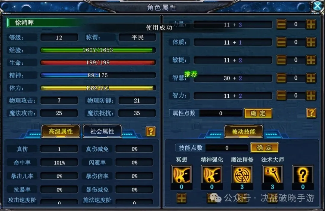 核心属性:游戏里有力量、体质、敏捷、智慧这些属性,对魔法师来说,智慧就是灵魂。这个属性直接提升魔法攻击、法术抵抗,是输出的根本。我建议主加智慧,把这属性点满再说。要是觉着自己太脆,容易在战场上“蒸发”,那就分少量属性给体质,加点血和防御。活着才有输出,这个道理在哪个战场都适用。