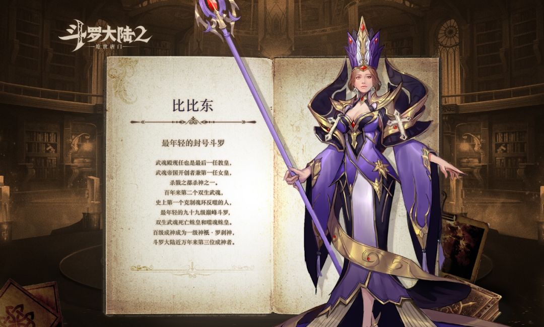 武魂殿末代教皇,武魂帝国开国女皇兼末代皇帝 ,斗罗大陆两万年来第三位成神者,诸多身份之下是一个前所未有的天才魂师,惊才绝艳,最年轻的封号斗罗!