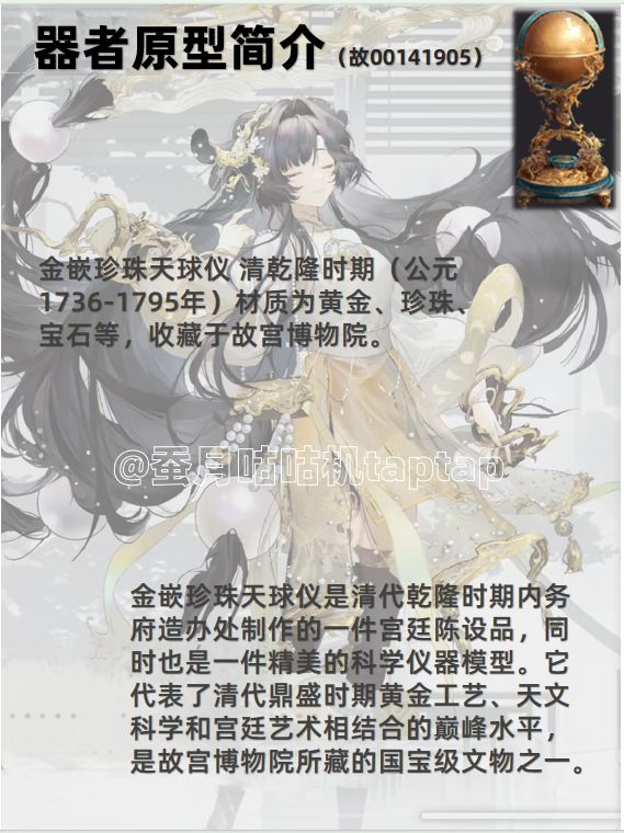 🌟器者原型:「金嵌珍珠天球仪」清乾隆时期,黄金宝石珍珠等为材质,收藏于故宫博物院。