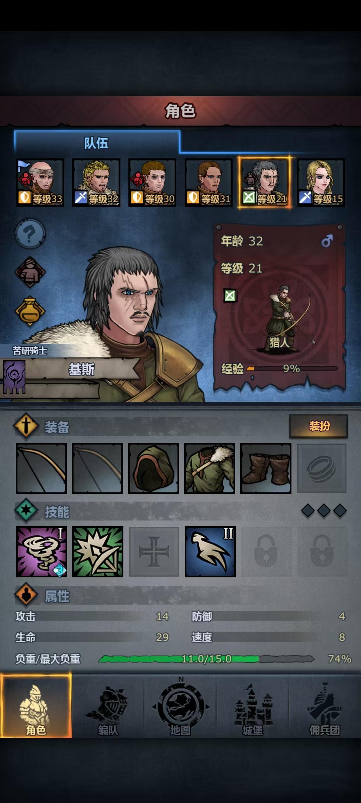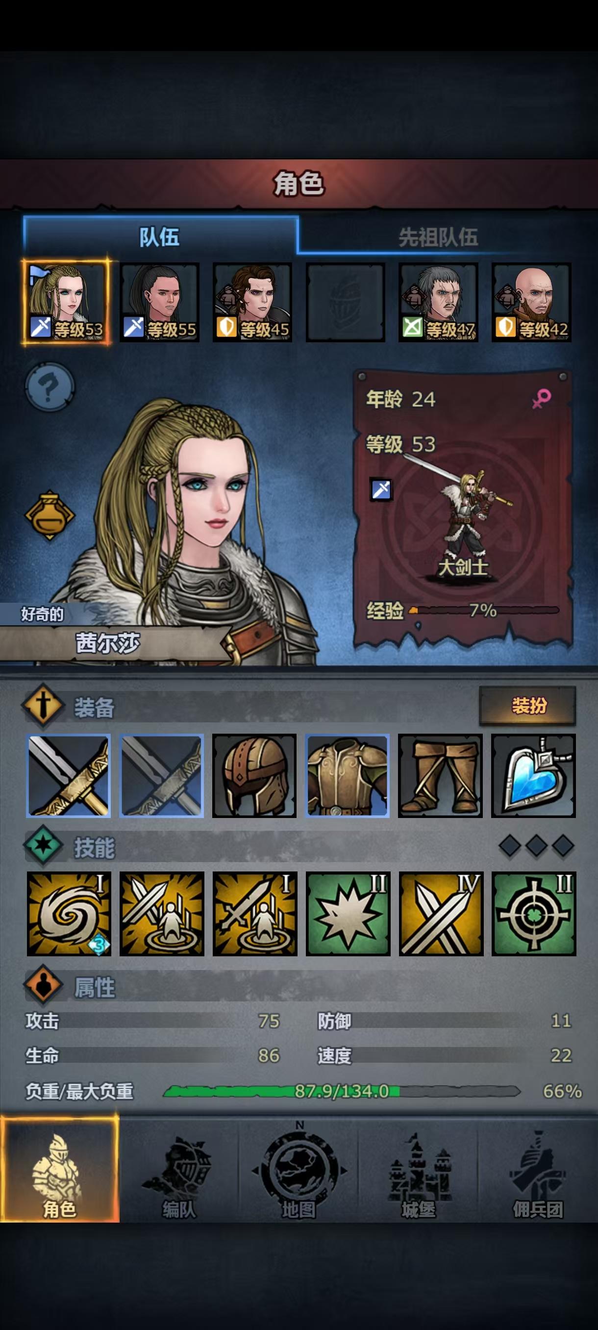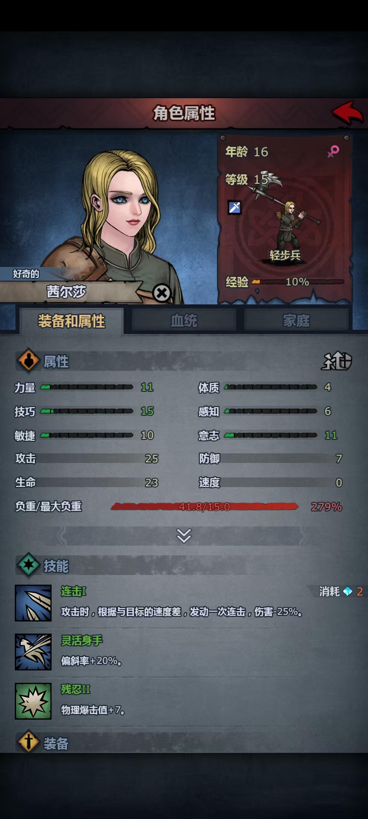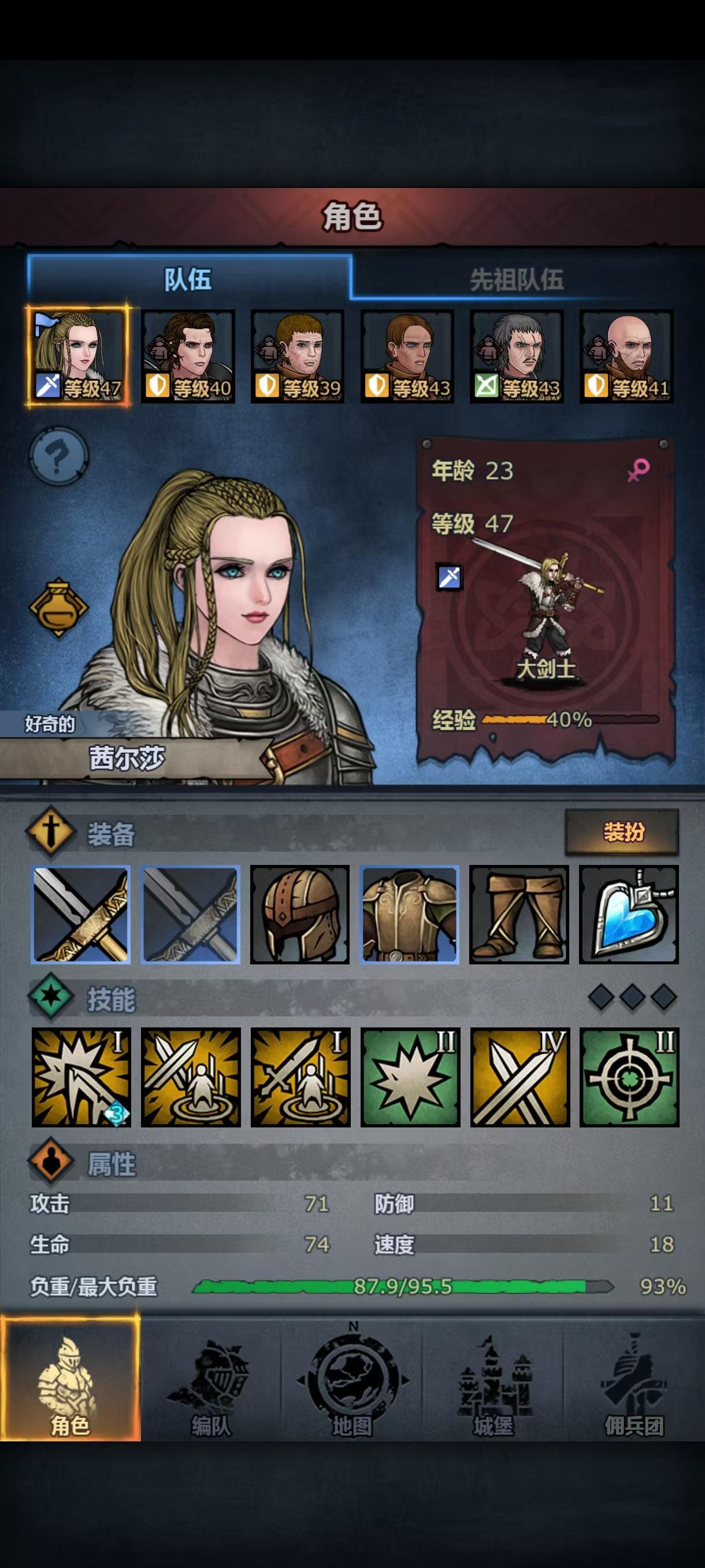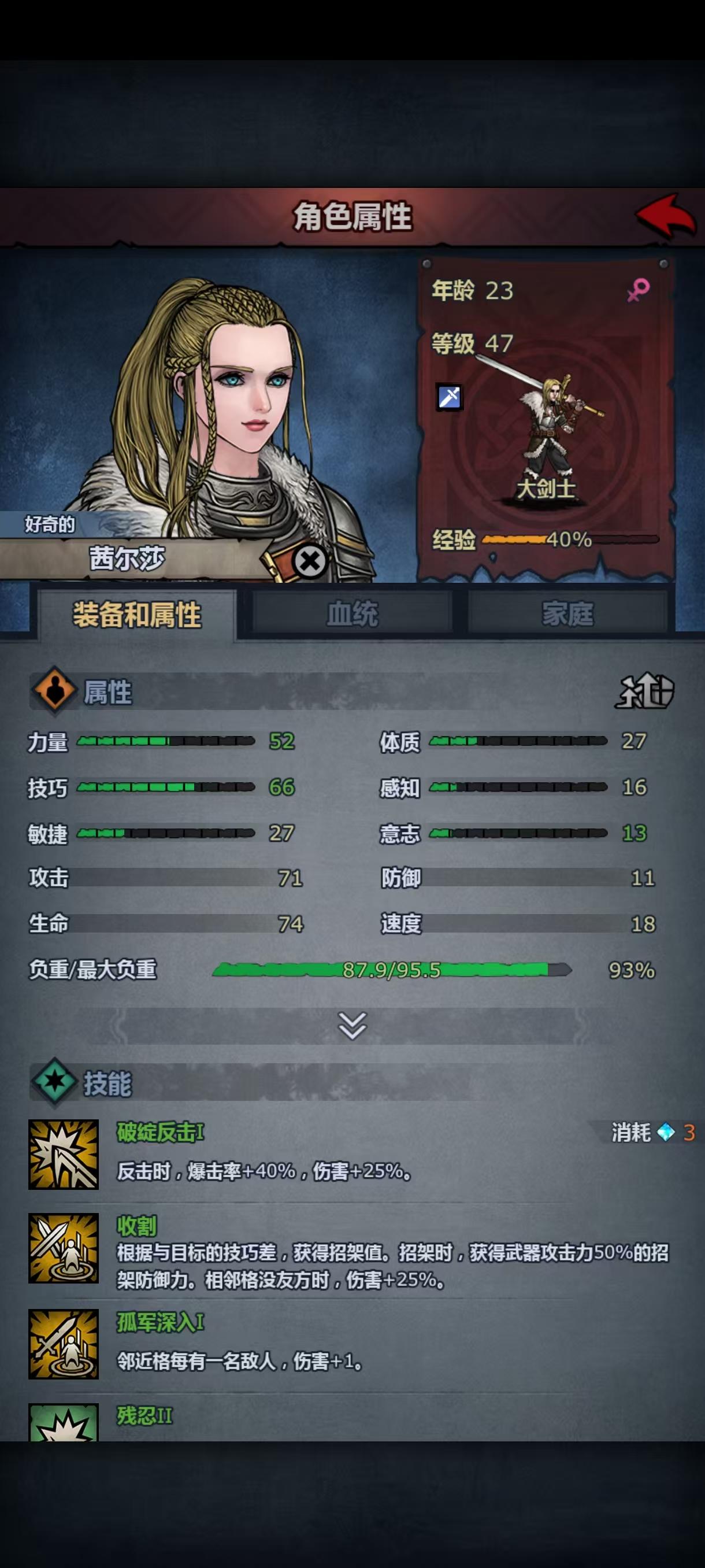 第二次攻略主线失败了,依然被波顿镇的重弩重甲殴打,小公主这次上阵了,但是转大剑力量不够,转方阵步兵体质不够,让我狠狠感受到了六维中a和c的差距,虽然最后也是转上了大剑,但是光数值技能就有十一个(没错,我把小公主从重步兵到骑兵轻步兵转了一大圈,技能等级没有一个高的😭)