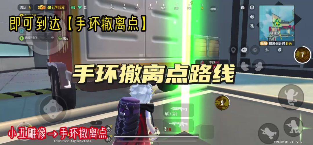 建议:①尽量多人在此撤离,好友组队可以选择本撤离点一起撤离——防止被鼠鼠偷;②如果肠肠是游击流派,可以在周围有掩体的地方苟着(保留好双技能),等待至最后10s直接一技能+二技能冲刺至撤离点——等待时间可根据躲藏的距离合理调整。