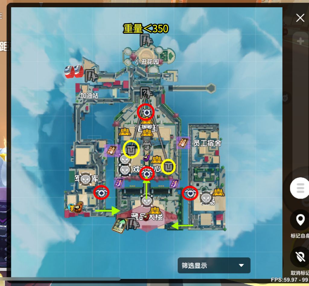 ⑴小丑花园撤离条件:背包内重量低于350。如果肠肠们背包物品超过350,那么该撤离点不会显示撤离倒计时。