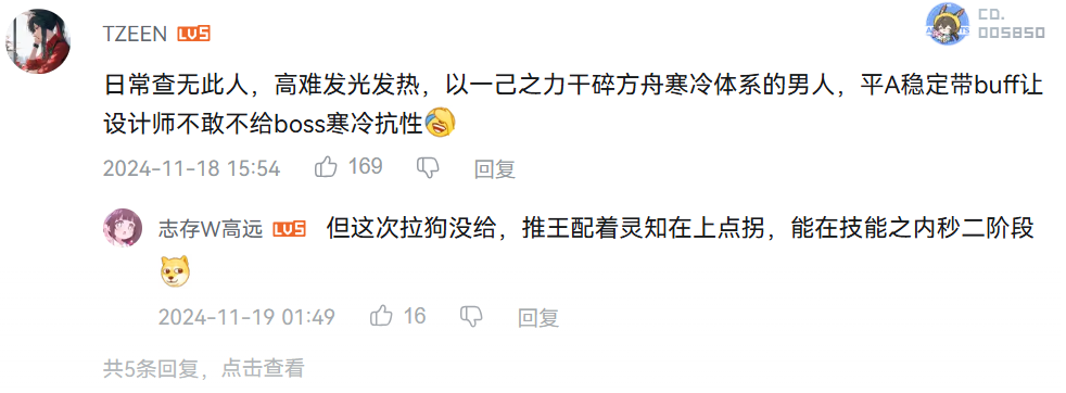 关于真言强度及其优势区间我已不想讨论,从血狼的“双boss弹射理论10w+20w总伤” (很多人就会吹一个数字,不看条件,不想喷了)到维云斯“15水母理论无藏秒杀n18水月四结局”的实践,乃至托佬同样的利用击杀无冷却弹射打出“千万级秒伤”的操作,我想有一定理解的玩家显然已经清楚了真言现版本和将来界园dlc1大版本可能的定位和表现