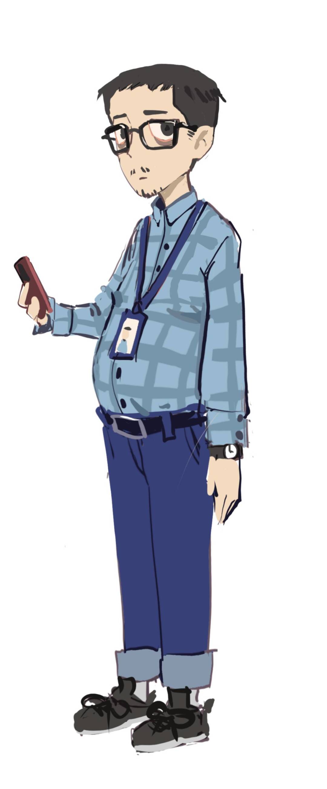 经过和主美的探讨,确定游戏美术风格为超现实主义卡通手绘拼贴风,以下是游戏主人公格里高尔人形态和虫形态的概念图: