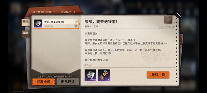 本来以为这些错过的奖励不会拿到了,错过就是错过了,没想到身为萌新也有拿到荔倾富婆这500w的一天,算是迟来的福利吧,下一个目标就是鹿游的那300w,嘿嘿,惦记半年了