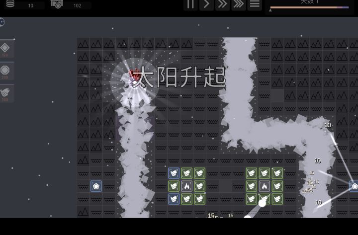 最后一波出怪量就不是能打死的,但是实际上那一波怪是到不了家的,我们只需要打死前面的小怪,或者说拖住前面的小怪,因此不能在右边那个火盆那里放太多塔,那边塔的索敌会锁到上面。