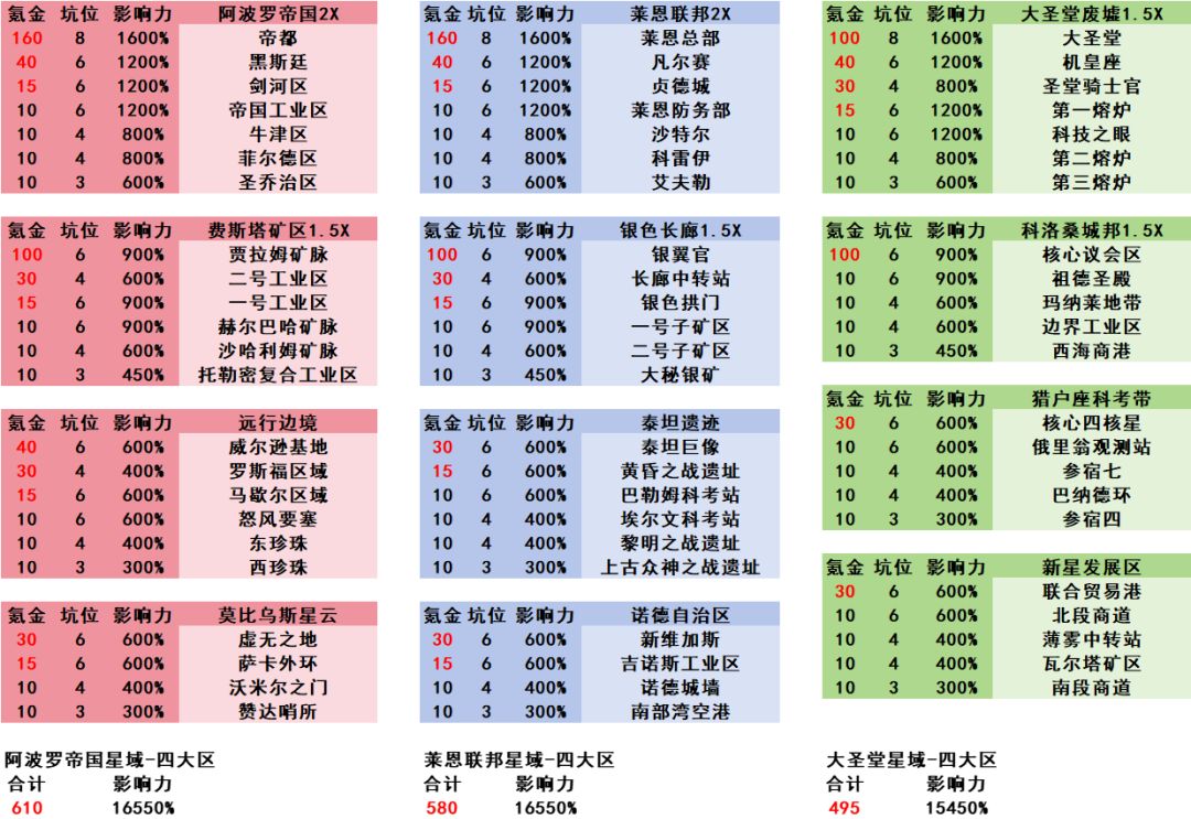 【军团影响力情况和资源分布】