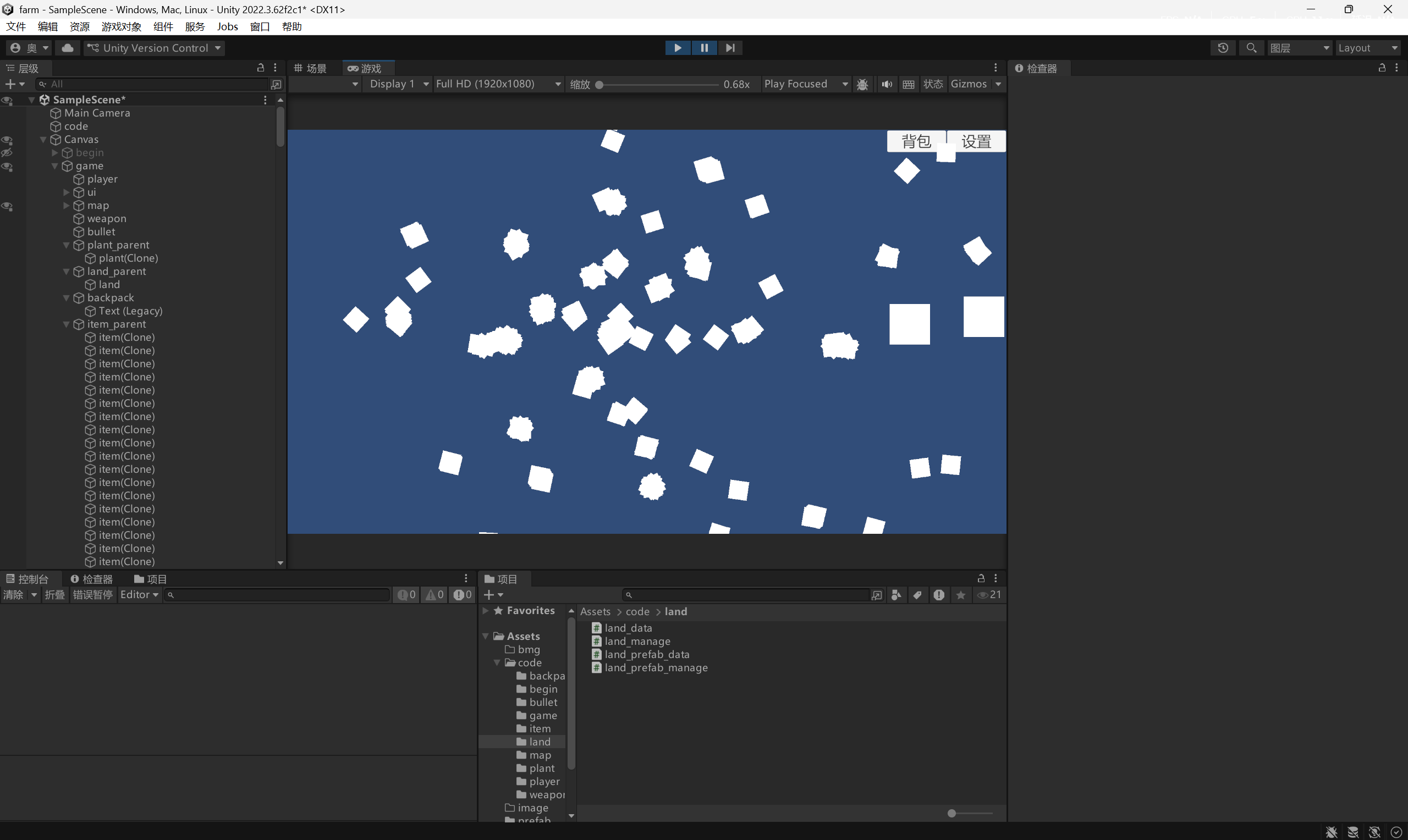 有意思的发现:在介绍游戏玩法前,讲讲我在制作游戏的有意思的发现,在生成预制体的过程中,意外生成了两个预制体,一个生成在canvas内,一个生成在外,但同一个三维坐标,结果是这样: