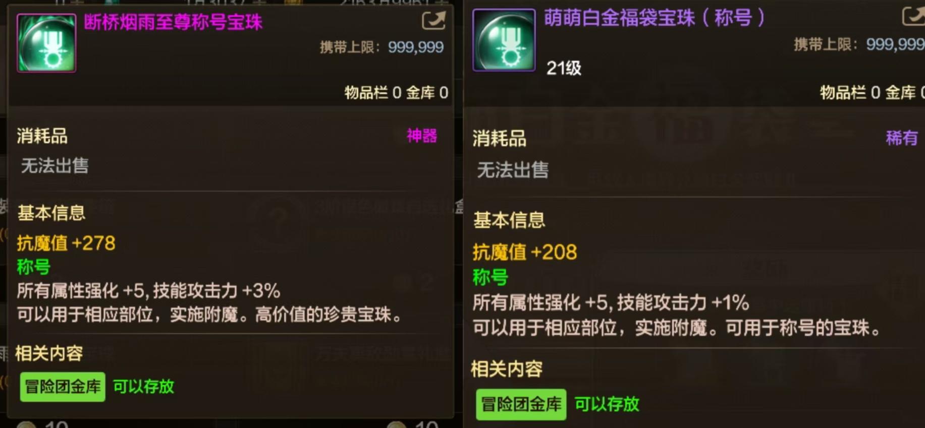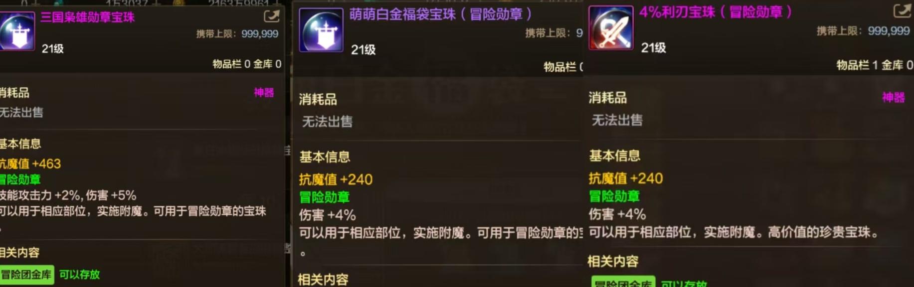 白金福袋冒险勋章宝珠:抗魔+240,伤害+4%。