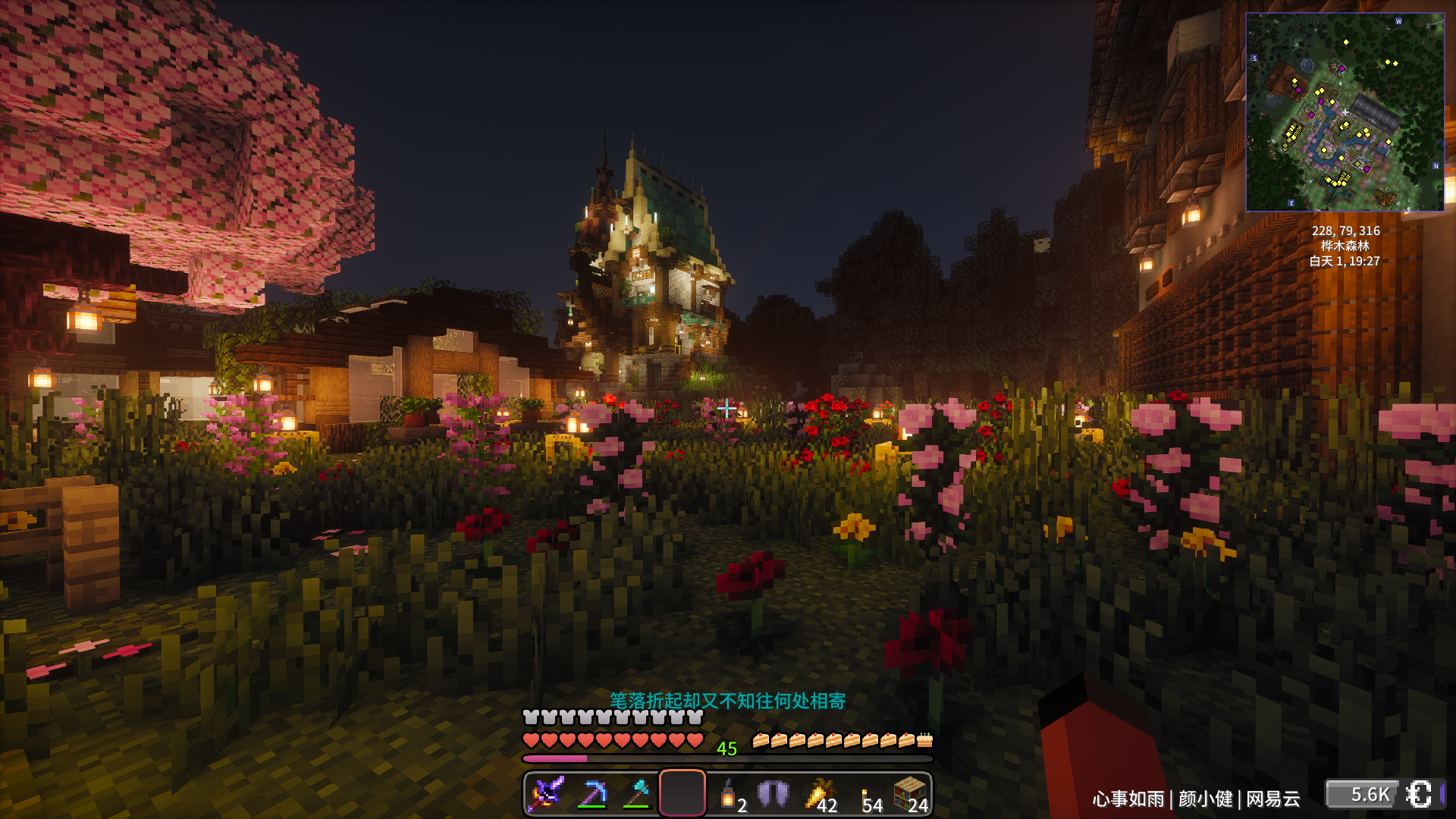 并且将河道扩建了一小段,延伸到新建的大仓库门口了。仓库与河对岸的建筑之间的桥梁第一方案用的模组桥梁方块搭建的,但搭配了总感觉丑死了,还不如原版方块好看,后面会对这个桥梁改造。
