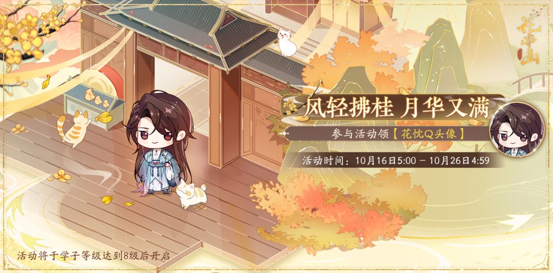 活动说明:活动期间,学子完成每日/累计任务,可获得花诏令、金叶子、银纹玉樱、朝华明珠等奖励,累计消耗体力达到指定数目还可领取【花忱Q头像】,详细活动规则可见游戏内说明。