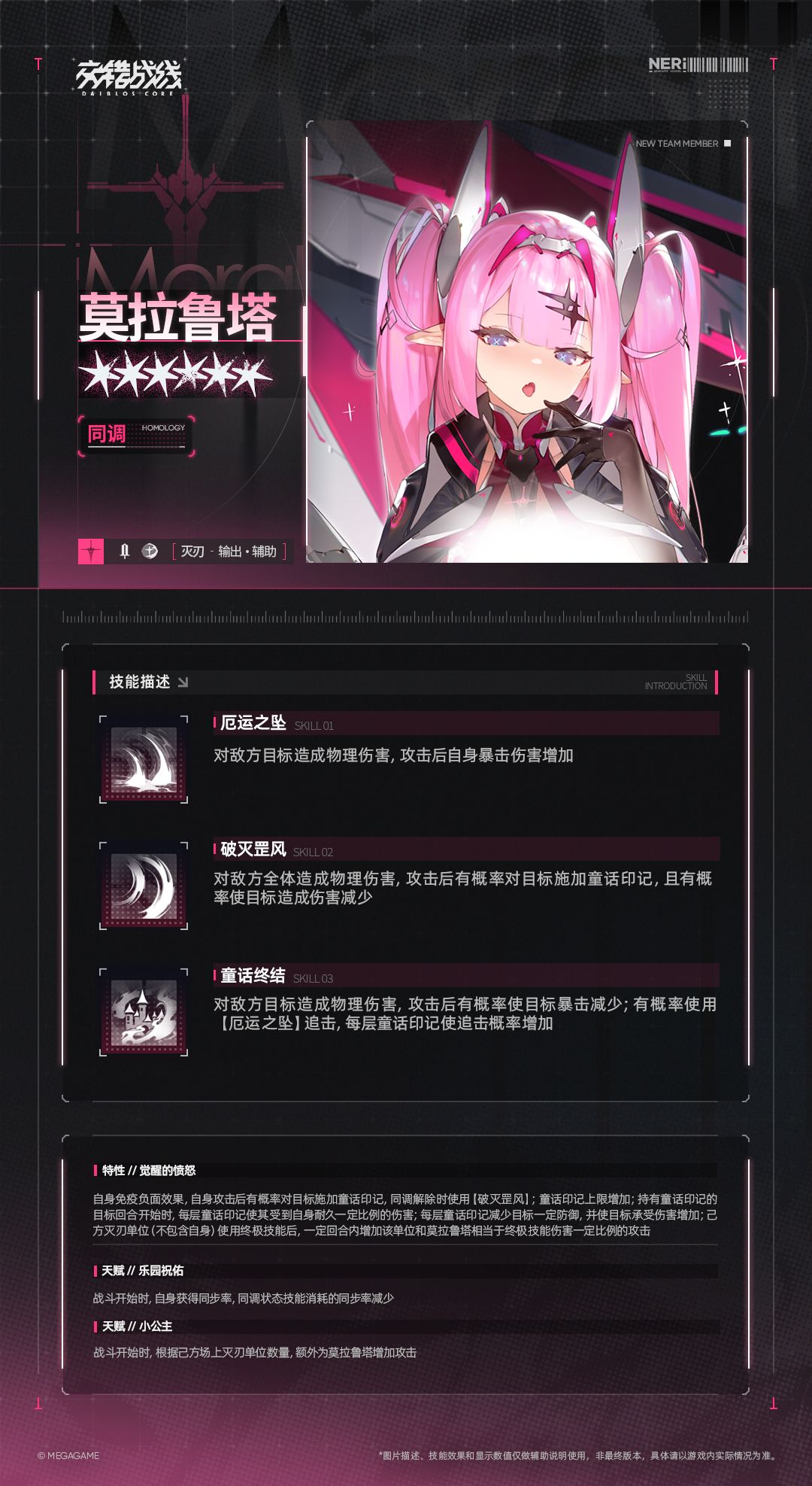 “初次见面,勇者大人!我的代号是莫拉鲁塔。虽然力量尚不成熟,但只要您一声令下,勇敢的公主便将与您并肩作战!”