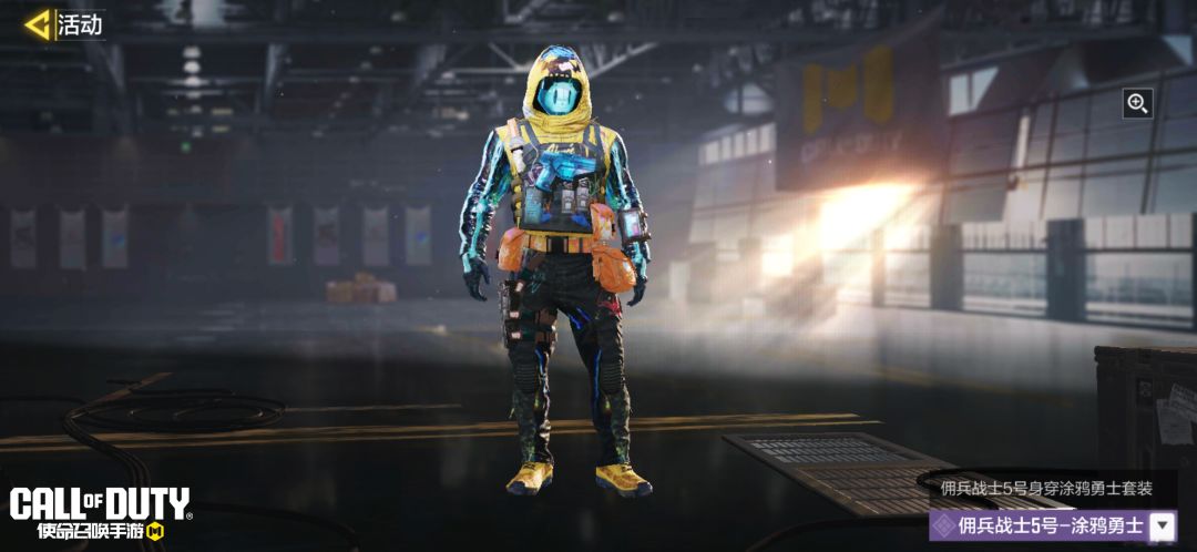 这一次,佣兵战士5号-涂鸦勇士将大胆的色彩碰撞运用于冲锋衣上。他身上战术背心的多口袋设计具有很高的实用性。为了配合这次行动,他为自己准备了四把武器,分别是CR56-魅力涂鸦、KN44-魅力涂鸦、Hades-支离破碎、AKS 74U-魅力涂鸦。