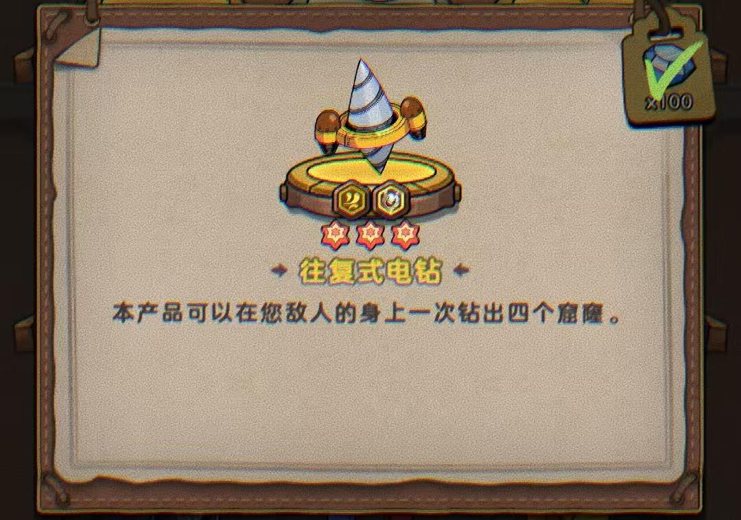往复式电钻:乔伊装备后,电钻会额外向前冲击一次。电钻造成伤害时会延缓冲刺速度并持续钻击。