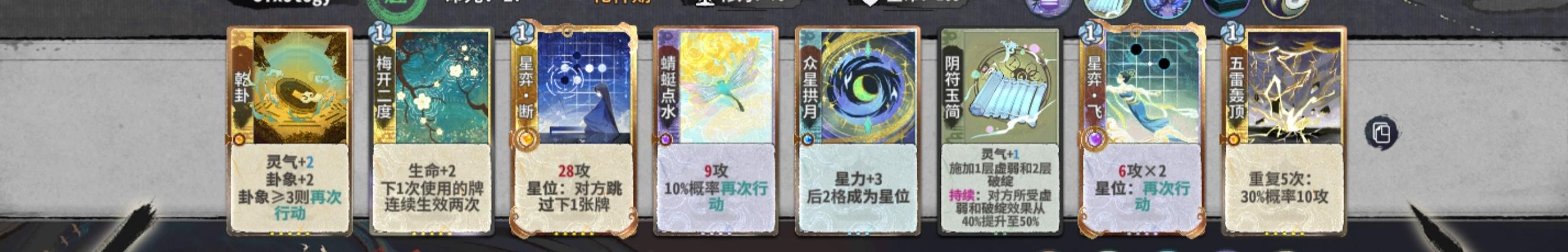 战力足够时6-8轮每轮一d即可,不够则继续小d。8轮上元婴正常情况只能留六张牌,留上面这几张牌即可(加灵,众星,绿书,三张优质输出),实在上不去可以九轮再上。