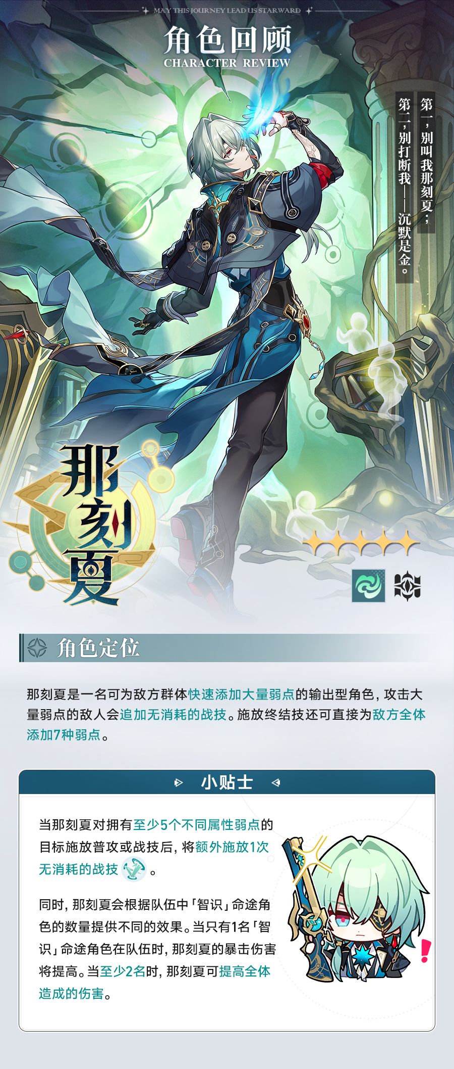 开拓者好呀~「那刻夏(智识•风)」马上就要返场了帕!快和帕姆一起来看看帕!