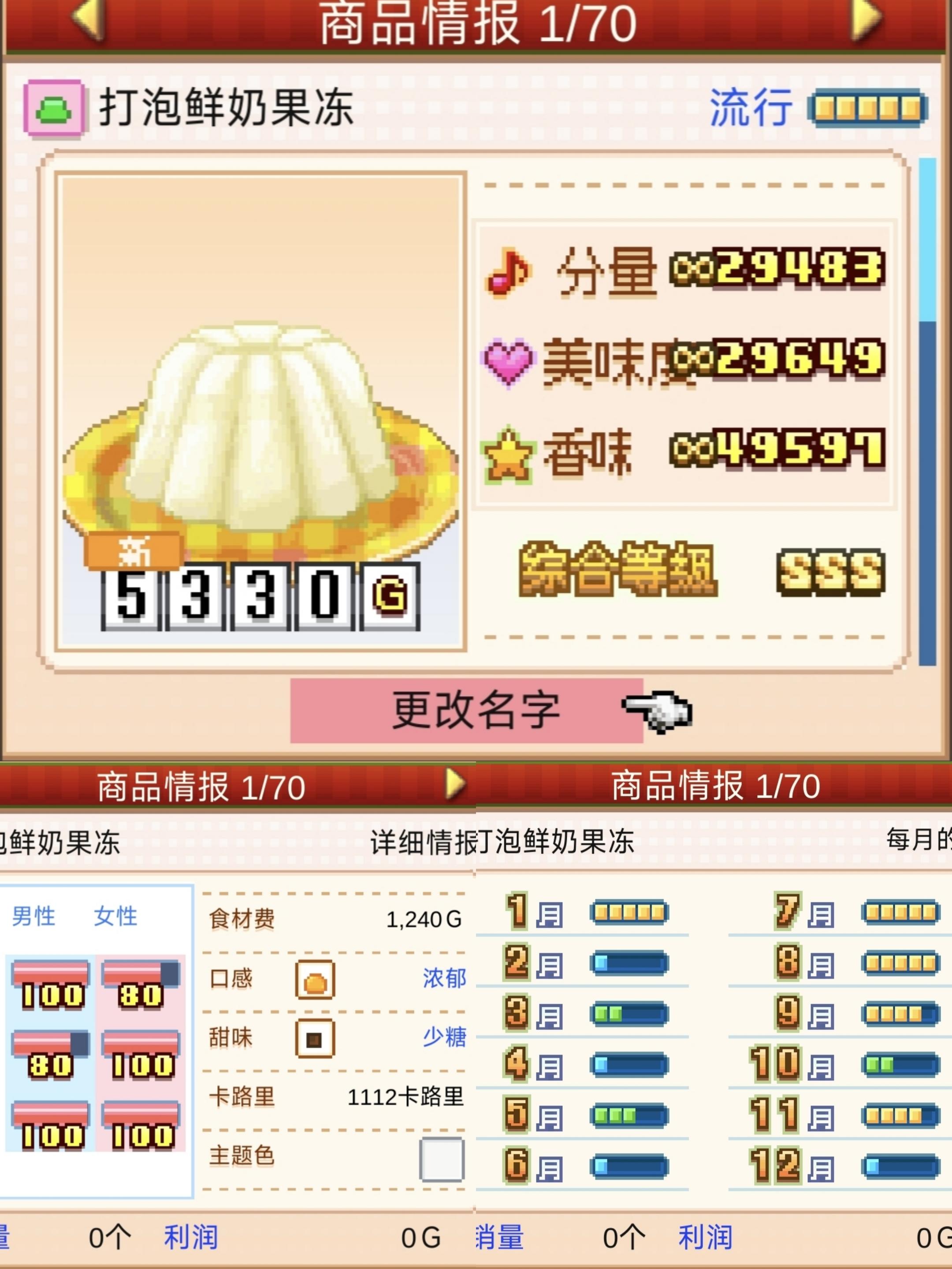 最终,蛋糕大盘、多彩盘显淡白色。和风盘黑色,甜品盘和优雅盘显黄色。树桩年轮蛋糕为黑色。