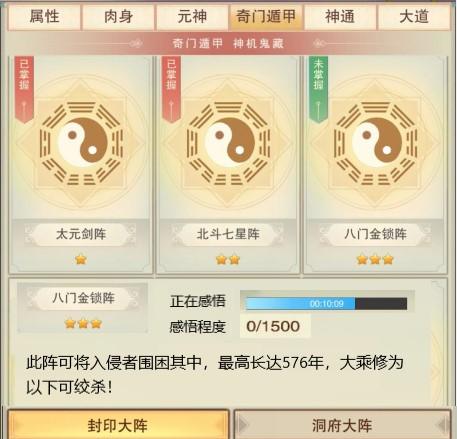 封印大阵的后续阵法可以在仙界、神界、混沌海、鸿蒙的商店中购买,需要达到一定的奇门遁甲等级才能学会。