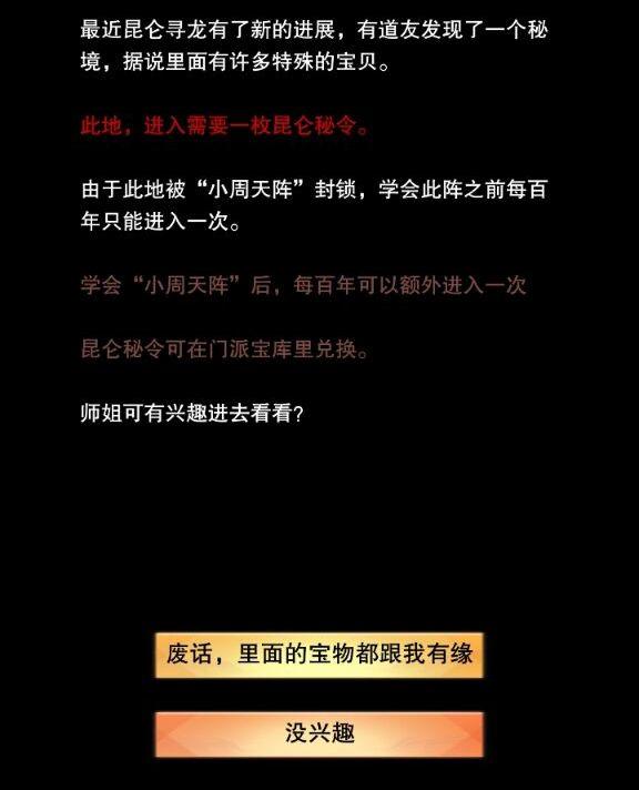 还能顺便填“掌握小周天阵能额外进入一次昆仑秘境”这个上古巨坑。