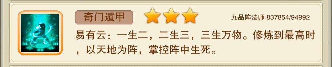也可以设置成:掌握了上一个阶段阵法并达到特定奇门遁甲等级之后,可以消耗功德愿力等若干材料,自行推演而出。