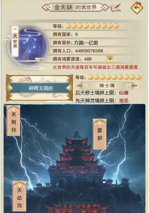 开启“雷部”后,可解锁天刑台,体内修行界的雷池、天劫、飞升台都由雷部掌管。