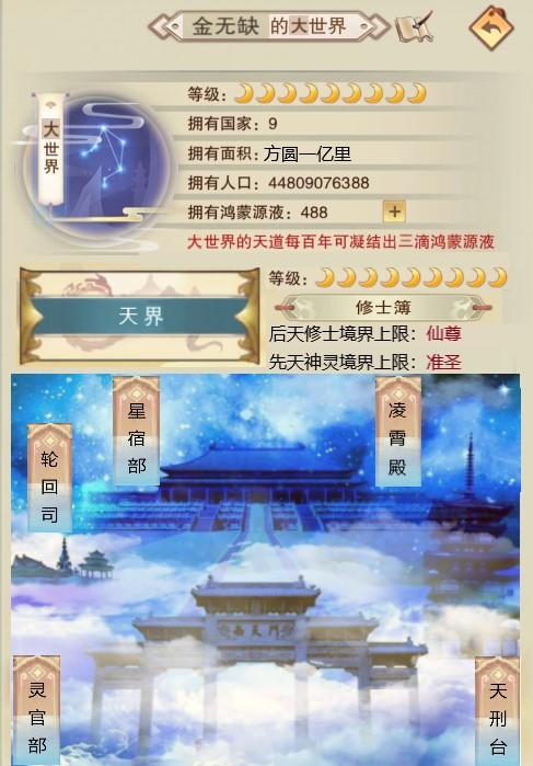 紫府小世界升为大世界后,即可开启天界,组织飞升修士成为各路天神天兵天将。