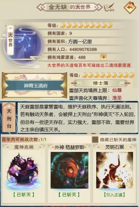 2.小世界9级后可升为大世界,开辟“天界”作为“修行界”的上位世界,容纳飞升之后的仙人。