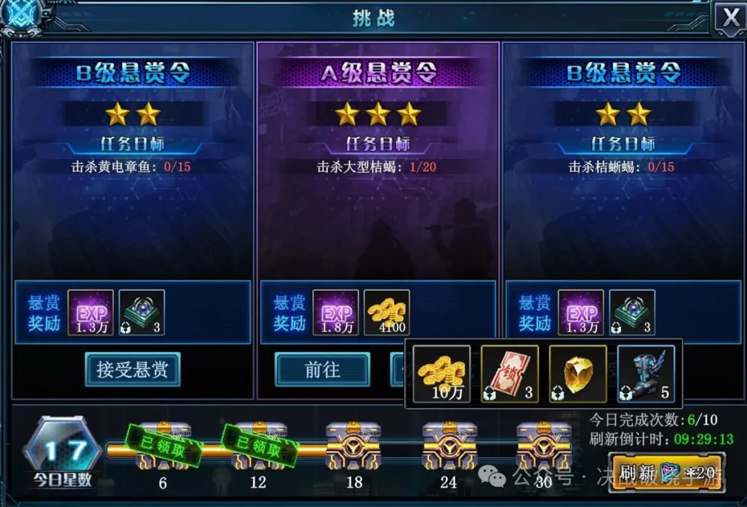 2、当角色步入30级,开启悬赏任务的,建议只做紫色和橙色任务,不然奖励拿不满。