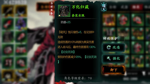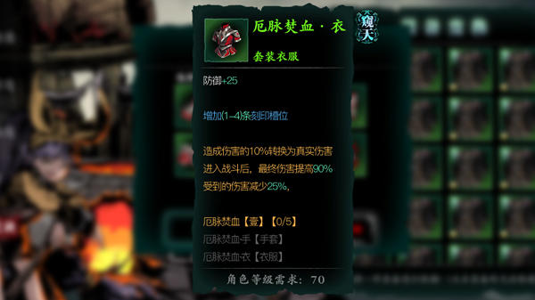 每件装备都有固定词缀:造成伤害的10%转换为真实伤害,造成的最终伤害提升,受到伤害减少。