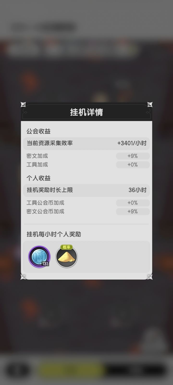 现在在公会挂机获取公会币是一小时是131公会币✖️百分之25加成=32.75✖️24小时=786续✖️一周7天=5502工会币