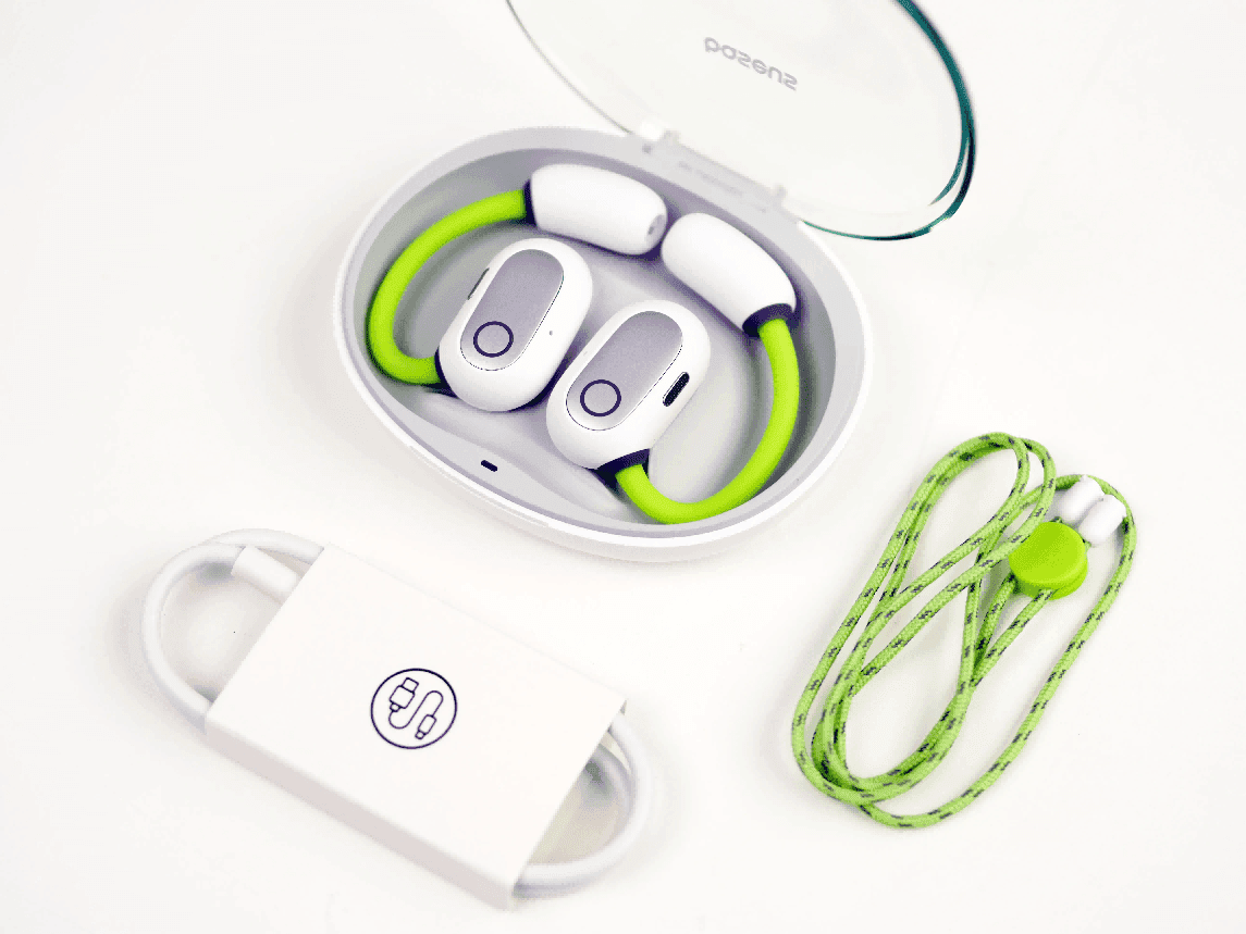 Ultra采用耳夹式设计,耳机主体通过柔性硅胶带连接发声单元与电池仓,边缘经过光滑曲面处理,并辅以磨砂金属材质,使佩戴时兼容眼镜、帽子等配饰,不会出现搭配冲突。