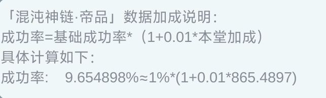 帝品装备我大概猜到了初始概率会在1%~5%,居然还真的有,本以为会是强化,没想到是项链,不过强化也没好到哪去,最后两个是5%,装备最后一排帝兵初始概率分别是10%、8%、6%、5%、4%、2%、1%,鬼见都愁