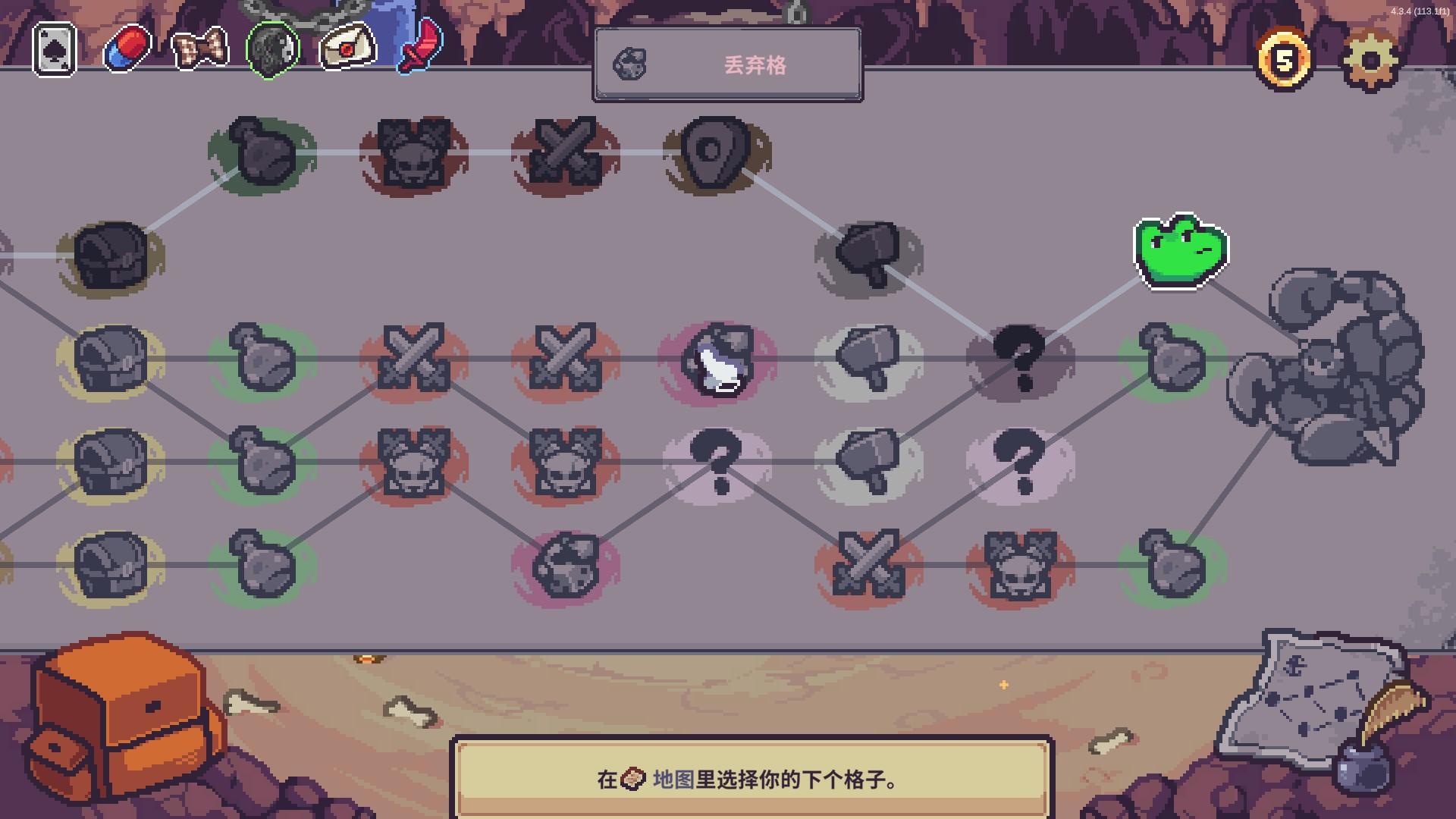 在地图的选择上,还是以不同路线分支上节点的选择进行,比如战斗格就有战斗、精英以及最后的BOSS战斗之分,除此之外,你的路线选择上还会出现未知格、锻造格、事件格、休息格、宝藏格、商店格等等,由你来选择路线去随机遭遇事件进行选择, 例如在锻造中改变骰子的点数、重新分配骰子,选择抢夺或是购买个各种魔法遗物等等。