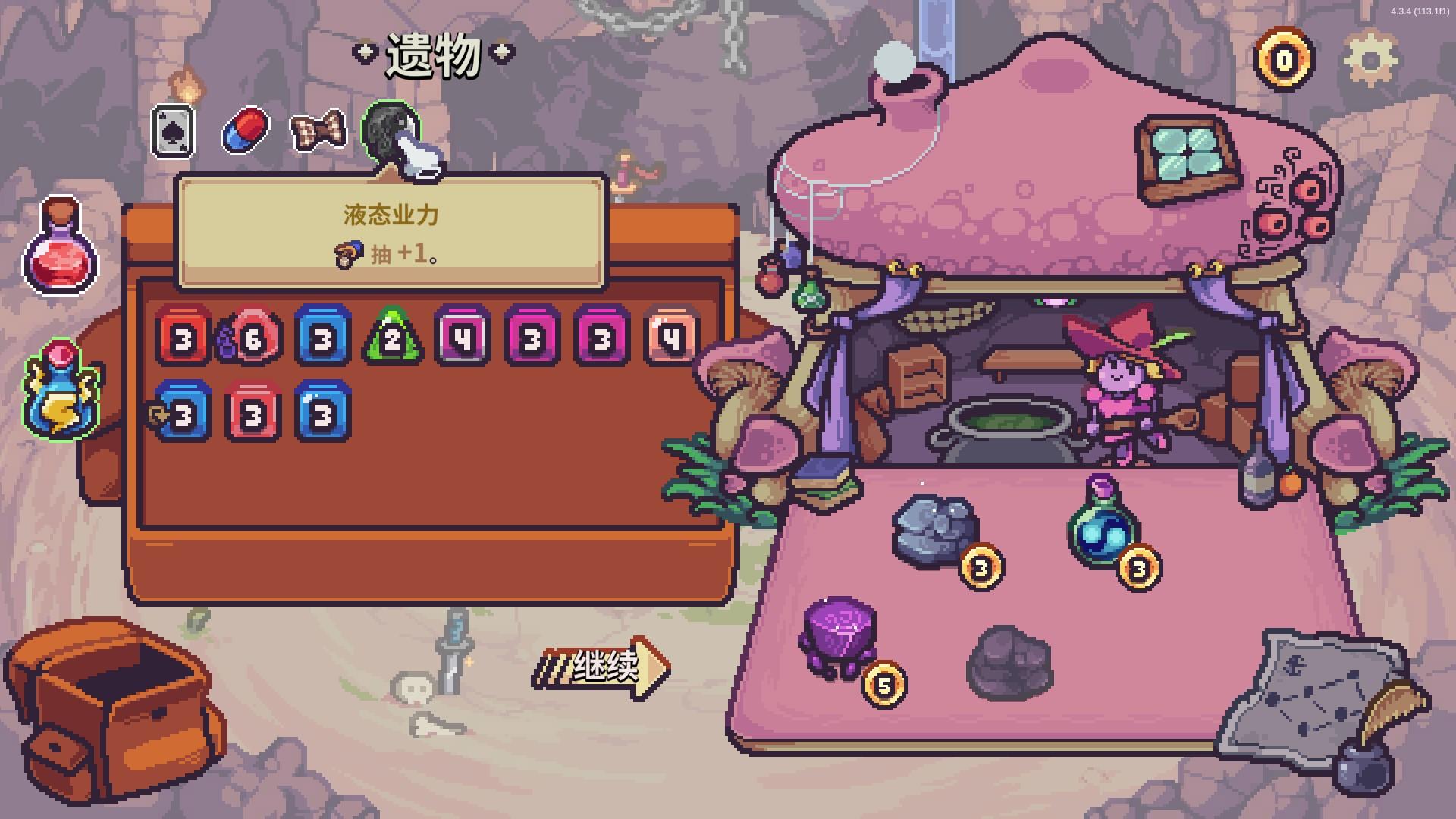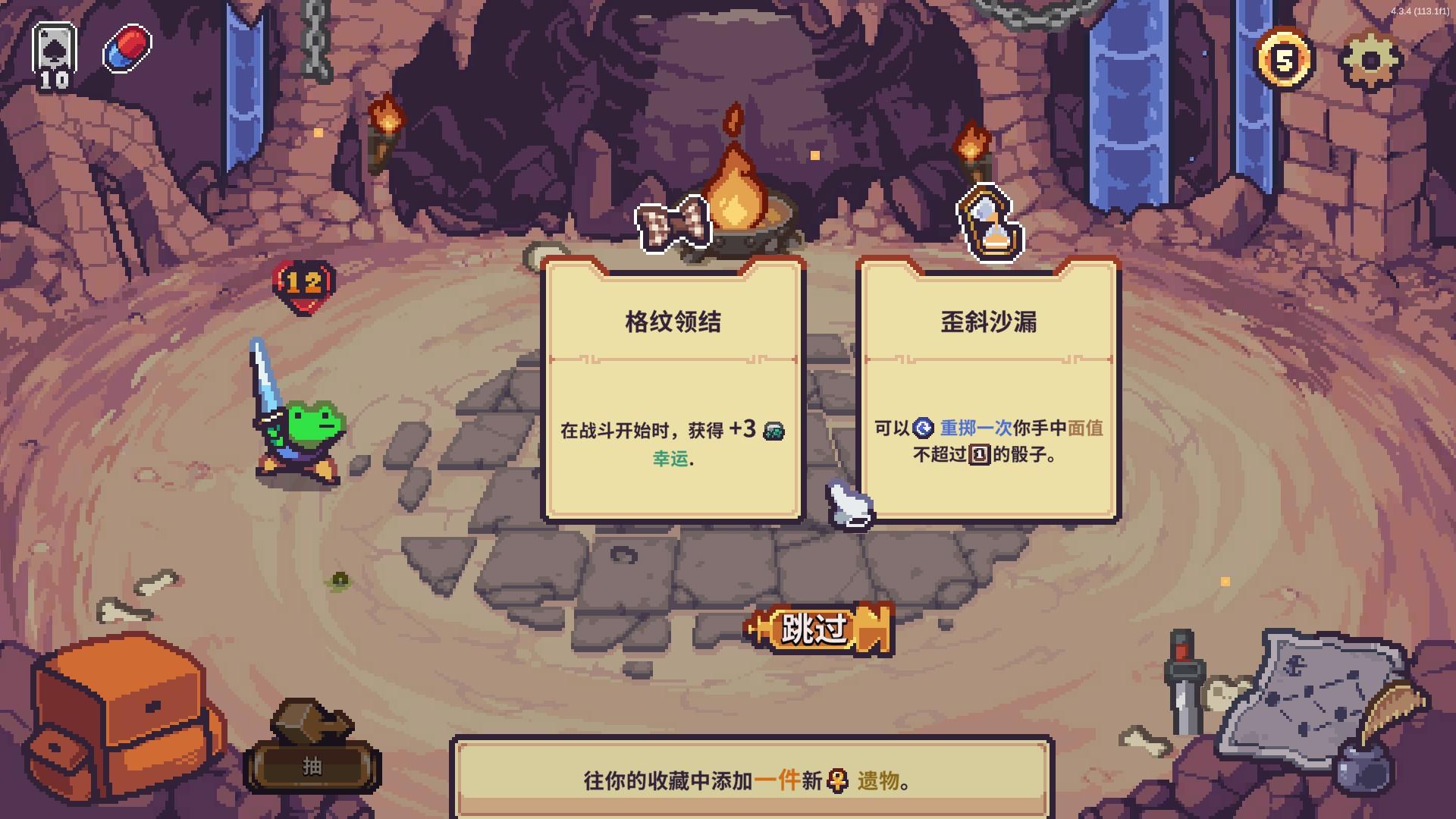 除了三种基础颜色的骰子之外,还有紫色的强化骰子,可以在放置后强化骰子盘里其他格子的数值,这样放置骰子后会增加点数,击败敌人之后就可以选择新的骰子放入抽牌堆也可以跳过骰子奖励获得1钱币。冒险开始也能选择一件起始的魔法遗物获得增益,继而开始你的冒险之旅。