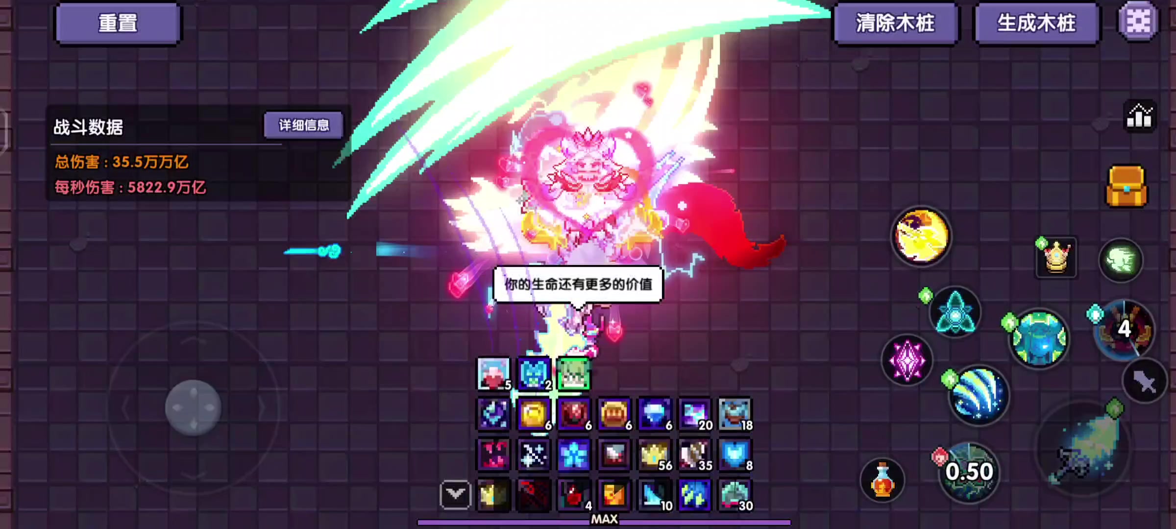 注意以上buff全叠好后,先把木桩清除,等个十几秒再准备打(防止奥义乱,期间持续使用普攻和辉煌)