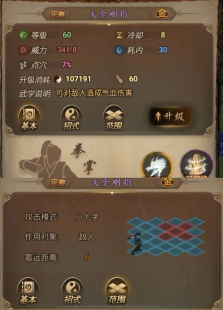 以上图为全部藏经阁奇遇汇总(江湖3阶内功见以前攻略)。本次图片均为满突破效果。距离随等级变化而变化,全是小十字。好像是40级5格,60级6格,80级7格。